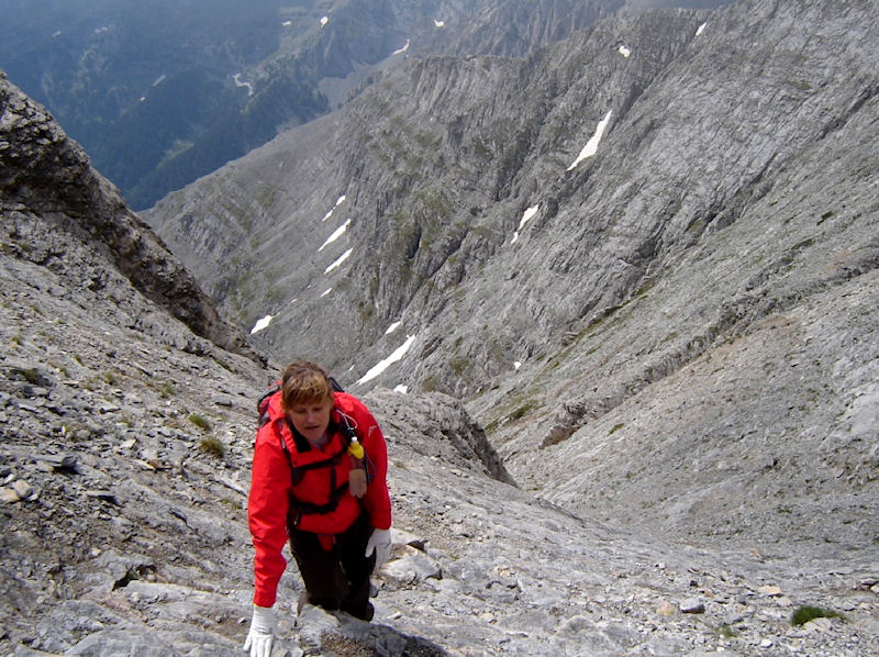 Nakon četiri sata penjanja od baznog planinarskog doma (Refuge A) na 2100 m n/m dosegnut je vrh Mytikas na 2918 m. Nakon njega, kad smo već bili tamo, popeli smo se i na obližnji 2912 m visok Skolio.
