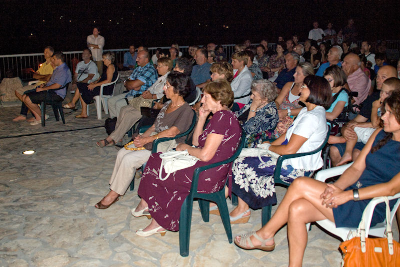Stotinjak stolica na terasi bilo je premalo za sve koji su došli čuti Paljetka, majstora riječi, ali i izražajnoga govornika svojih stihova. Domaća publika imala je prigodu prva čuti dvije nove Paljetkove pjesme koje je, inspiriran prostorom antičke Narone, posvetio carici Liviji. Treća nova pjesma nastala je u vrtu Darkove bake Ruže koja je i sama došla poslušati Luka i Darka te joj je Paljetak predao prigodan dar.