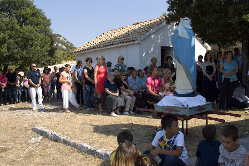 16.8.2013. - Blagdan Uznesenja Blažene Djevice Marije posebno se slavi u dolini Neretve i rubnim područjima na nekoliko mjesta. Mi smo jučer otišli na brdo Obličevac u Istočnoj Plini gdje je pred bivšom župnom crkvom Velike Gospe, koja se u crkvenim maticama spominje još 1773., misno slavlje prevodio i propovijedao nekadašnji župnik u župi sv. Ilije fra Mario Jurišić.