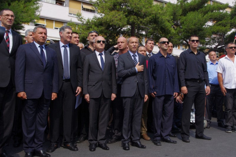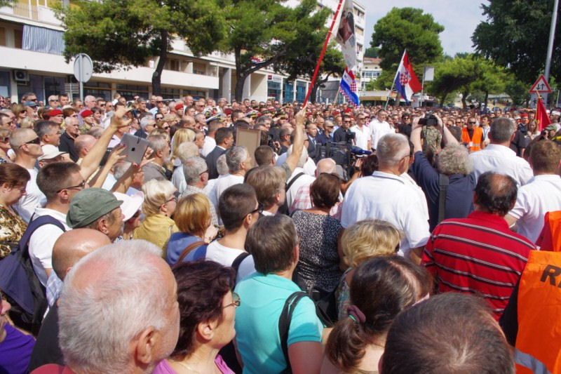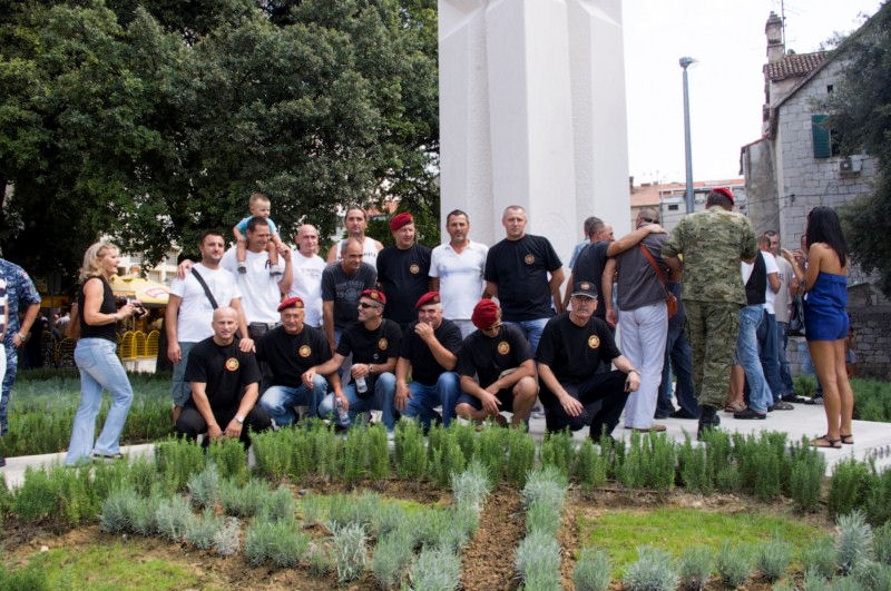 Skupu su se obratili gradonačelnik Splita Ivo Baldasar, župan Zlatko Ževrnja, ratni zapovjednik IV. gardijske brigade general Damir Krstičević te izaslanik predsjednika RH ministar branitelja Fred Matić. Spomenik su na opće oduševljenje zajedno otkrili generali Ante Gotovina i Damir Krstičević. Na kraju je predsjednik Udruge veterana IV. gardijske brigade Božo Zadro zahvalio svima koji su pomogli u postavljanju toga spomenika. Svečanosti su nazočili i veterani IV. gardijske brigade iz doline Neretve.