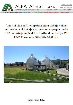 - Vanjski plan zaštite i spašavanja od velikih nesreća koje uključuju opasne tvari za pogon tvrtke INA - industrija nafte d.d., PJ UNP terminala, Metković (kliknite na sliku dolje)