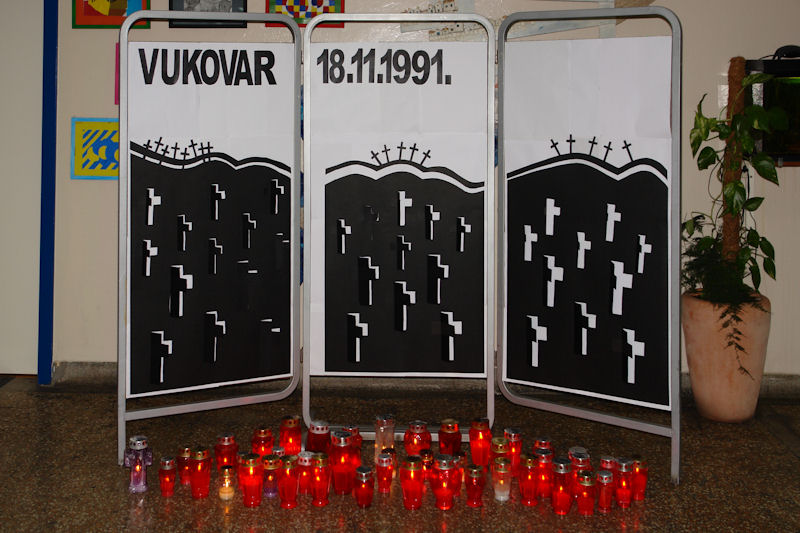 U OŠ Stjepana Radića, na 1. katu škole, izrađen je pano koji je s učenicima likovne skupine pripremio Ante Leko, mag. lik. kulture. Ispred panoa učenici su zapalili svijeću.