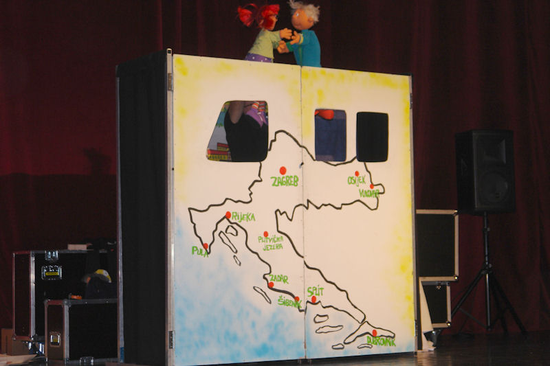 20.11.2013. - Za učenike nižih razreda OŠ Stjepana Radića danas je lutkarsko kazalište Produkcija Z iz Splita izvelo lutkarski mjuzikl Lijepo putovanje Lijepom našom. Autor priče je Duško Mucalo, glazbu je napisao Ivo Lesić, a autorica scenografije i lutaka je Luči Vidanović.