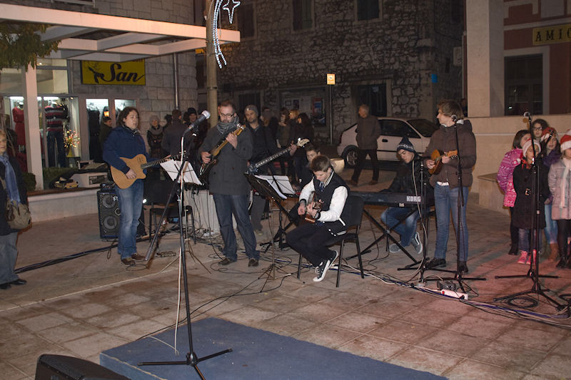 Koncert je pjesmom Božićna zvona otvorila Klapa Sv. Nikole, nakon čega su okupljene građane u susret Božiću pjesmom i recitacijom vodili Ženska klapa Žveljarin, Dječji zbor Župe sv. Ilije, Zbor mladih Župe sv. Ilije, Mandolinski orkestra KUD-a Metković s gostima iz Gradskoga mandolinskog orkestra Vrgorac, Dječja folklorne skupina KUD-a Metković te solisti i učenici Gimnazije Metković: Ivan Bebić, Maja Jerković, Ante Marević, Martina Živkušić, Martina Matičević i Nikica Ilić. Sretan Božić građanima su poželjeli Dječja folklorna skupina KUD-a Metković izvodeći Kolendu te Nikica Ilić koji je u pratnji svih izvođača otpjevao pjesmu pok. Tomislava Zubčića Zupe Božić u Neretvi. Tijekom priredbe posjetitelji su se mogli okrijepiti vrućim čajem i kuhanim vinom te fritulama, raznim vrstama pekarskih proizvoda i kolačima, za što su se svojim donacijama pobrinuli Hotel Narona, Pekara Valent, Pekarstvo Metković i neke naše sugrađanke koje su pekle kolače.
