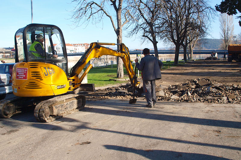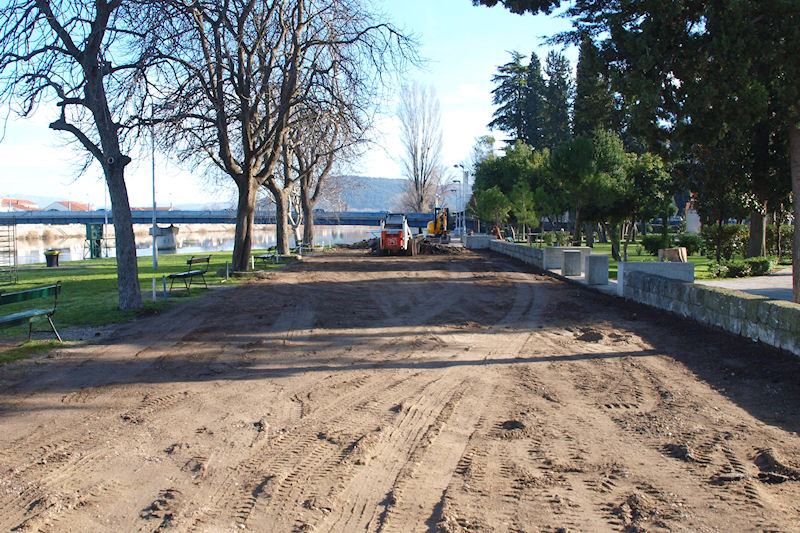 9.1.2014. - Jučer i danas traju radovi na uređenju dijela Velike rive uz gradski park. Skinut je stari ispucali sloj asfalta pa će se površina najprije nasuti odgovarajućom podlogom kako bi se zbog oborinskih voda dobio odgovarajući pad prema Neretvi. Na kraju će sve biti prekriveno novim asfaltom. Investitor je Grad Metković, a radove izvodi tvrtka Asfalt inženjering iz Metkovića.