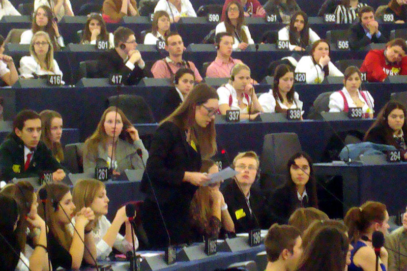 U petak, 17. siječnja, 477 učenika iz 20 zemalja članica Europske unije postalo je na jedan dan europarlamentarcima, raspravljajući u nacionalno šarolikim skupinama o zadanim temama na jednom od triju službenih jezika: engleskom, njemačkom ili francuskom, što je omogućilo našim učenicima da svoja gledišta razmijene s ostalim sudionicima te ponude različita rješenja za pojedine probleme.
