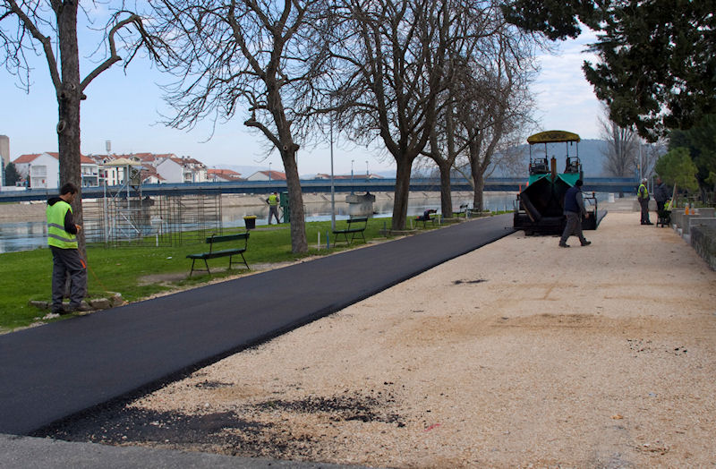4.2.2014. - Konačno je suho vrijeme omogućilo rad asfaltnoj bazi pa je danas asfaltiran dio Velike rive, a radovi će se nastaviti i na saniranju rupa po gradskim ulicama te na mjestima na kojima se u posljednje vrijeme nešto radilo pa je bio skinut asfaltni sloj.