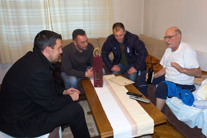 POSJET NERETVINIM VETERANIMA U petak, 15. veljače članovi Uprave posjetili su dvojicu bivših Neretvinih igrača – legendarnoga Nikolu Bebića Sinkolu, čijim je golom 1967. Neretva izbacila Hajduka iz Kupa, te Franu Kovačevića Grofa, nekadašnjega Neretvina golmana, a kasnije i predsjednika Kluba te dugogodišnjega člana Uprave. Dvojici metkovskih nogometnih legenda uručili su zahvalnice i posebno 'Neretvino vino'.                   Frano Kovačević Grof (stoji treći zdesna) i Nikola Bebić Sinkola (čući uspod njega) na gostovanju Neretve u Čehoslovačkoj 1968.