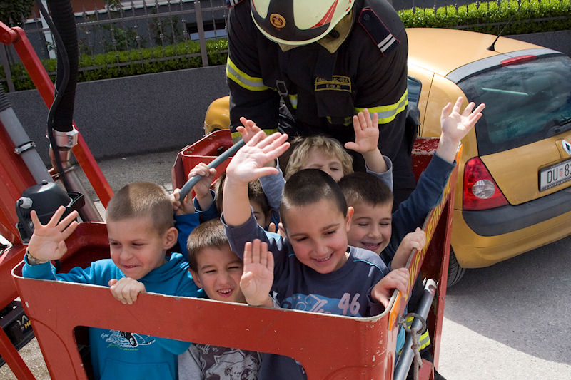 S obzirom na velik broj vrtićana bilo je i onih koji su se malo prepali, ali straha je nestao kada su dobili prigodu ući u vatrogasnu košaru i iz ptičje perspektive (naravno, ne previsoke) pogledati na svoj vrtić i grad pa su svi strpljivo čekali u redu. Mi smo iskoristili prigodu i podignuli se na svih 14 metara i napravili panoramu Krnjesavca, najstarijega metkovskog naselja, još od vremena kada se u Bebićevu pećinu za nevremena sklanjao kakav kromanjonac.