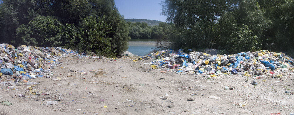 Divlje odlagalište smješteno je uz Neretvu između Čapljine i Mogorjela na prostoru od nekoliko desetaka hektara. Kada vodostaj poraste Neretva se ulije taj prostor i sobom povuče plutajući otpad. Fotografije iz srpnja 2013.