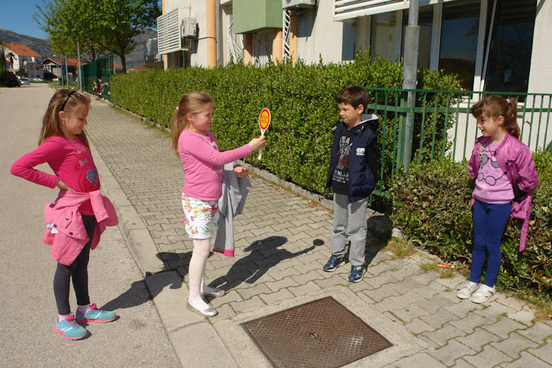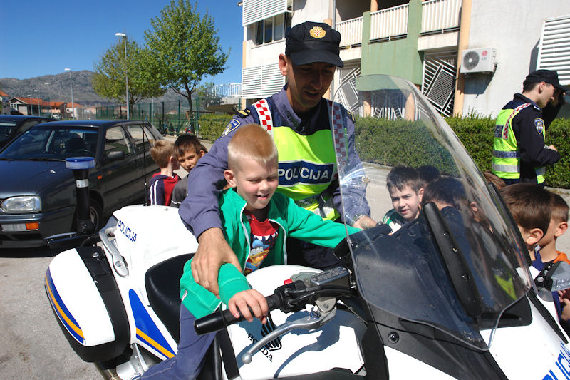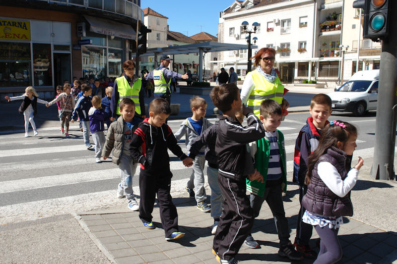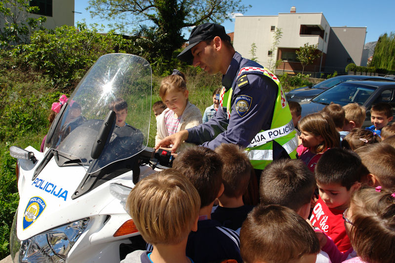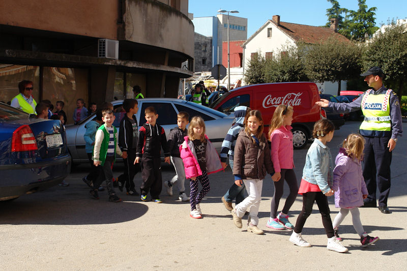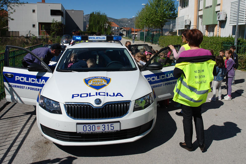 Po završetku predavanja predškolci su u pratnji svojih teta prošetala gradskim ulicama, a za vrijeme šetnje policijski službenici su ih educirali kako ispravno sudjelovati u prometu. Demonstriran je ispravan prelazak preko pješačkog prijelaza na kojem nema fizičke i svjetlosne regulacije prometa, ali i prelazak ulice uz policijsku regulaciju prometa i onu reguliranu prometnim svjetlima, odnosno semaforima. Djeci je prezentirana i policijska oprema koja se koristi u svakodnevnom radu policije prilikom nadzora prometa.