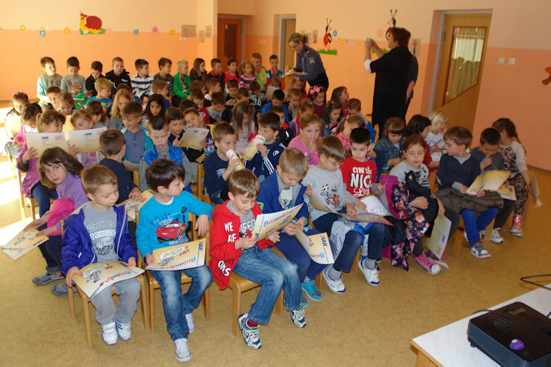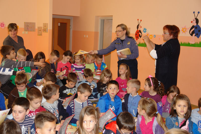 Čitanjem priče Sa zebrom sigurno u školu, prikazom edukativnih slajdova i vizualnom demonstracijom fizičke regulacije prometa, policijski službenici za prevenciju ukazali su djeci predškolskog uzrasta na poželjno ponašanje u prometu, tj. način kretanja po ulicama, nogostupu i pješačkom prijelazu. Mališanima su također govorili i o sigurnosti u automobilu ili autobusu.