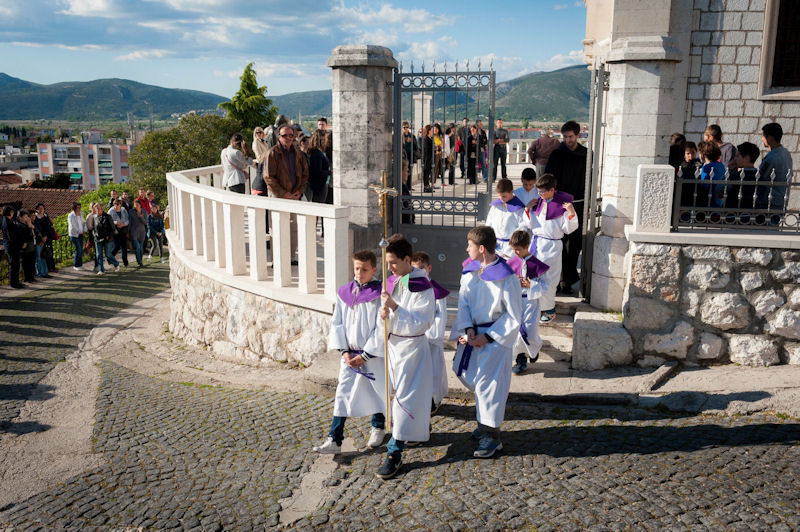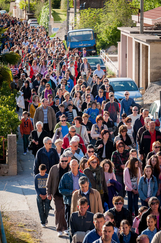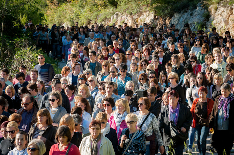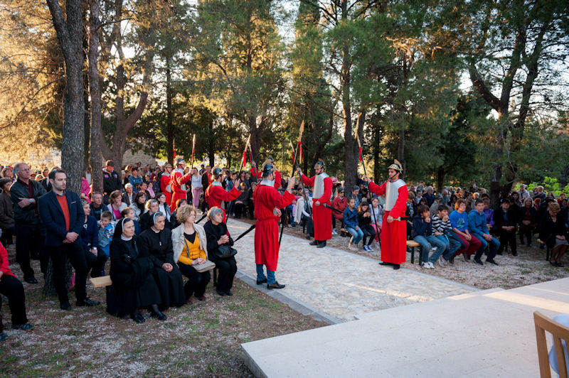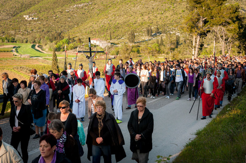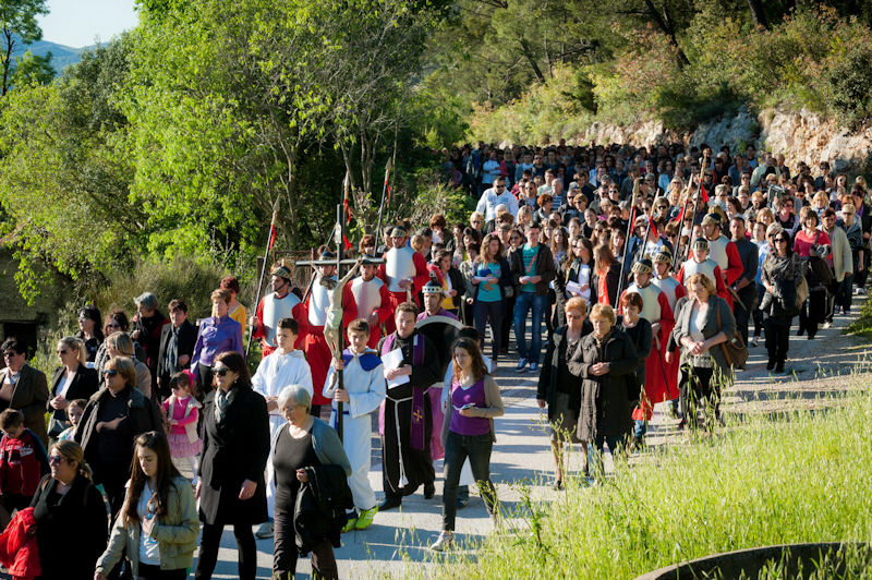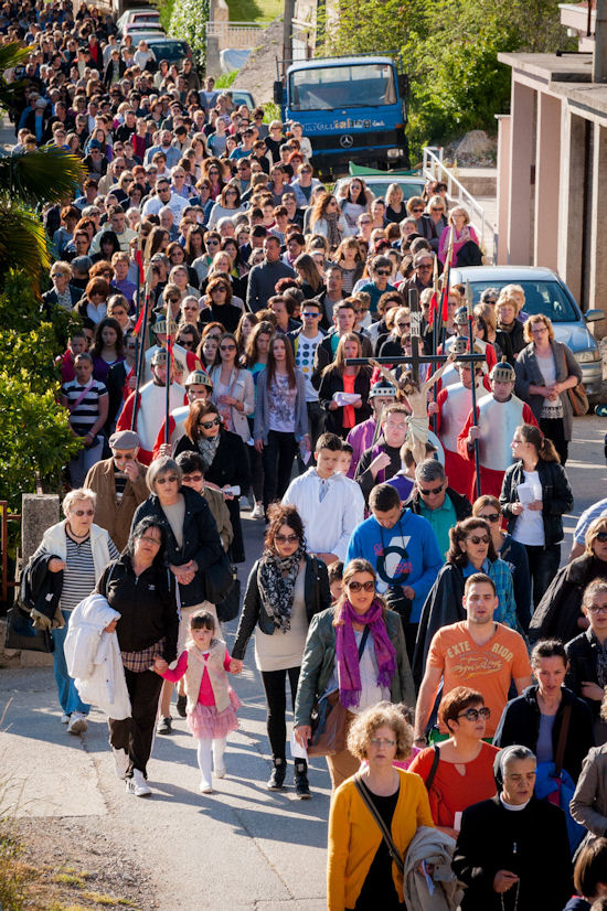 12.4.2014. - Jučer je u popodnevnim satima od župne crkve sv. Ilije krenuo Put križa čija je zadnja postaja bila pred Svetištem sv. Ante na Repu u Dubravici. Na Križni put pošlo je preko tisuću vjernika koji su predvođeni svećenicima i članovima metkovske FRAMA-e uz molitve zastajali na postajama. Nakon XIV. postaje u Svetištu je služeno misno slavlje koje je predvodio župnik fra Petar Gulić u koncelebraciji fra Lukice Vojkovića i fra Kristijana Perkovića. Sutra je Cvjetnica, a rasporede služenja misa pogledajte na mrežnim stranicama župa sv. Ilije, sv. Nikole i Gospe Snježne.