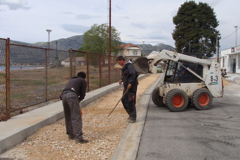 17.4.2014. - Nakon što je postavljen dio nogostupa pred budućom zgradom pravosudnih ustanova, radovi u Hebrangovoj nastavljaju se ugradnjom betonskih rubnika između planirane zelene površine i nogostupa te pripremom podloge za asfaltiranje parkirališta uz lijevu stranu ulice.
