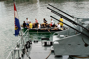 12.8.2005. - Danas je u poslijepodnevnim satima Neretvom u Metković uplovio ophodni brod OB-64 "Hrvatska Kostajnica" koji će sutra na maratonu lađa biti u pratnji predsjedniku RH Stjepanu Mesiću na brodu "Palagruža". Prihvatili smo poziv na kavu zapovjednika broda poručnika fregate Ivana Tadića i saznali ponešto o brodu.