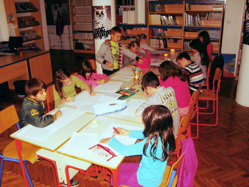 Osnovna škola Stjepana Radića U knjižnici OŠ Stjepana Radića organizirano je čitanje pod šterikama. Prvo su učenici od 1. do 4. razreda slušali bajku Tri medvjedića, potom je interpretirali, a na kraju i oslikali. Da Noć knjige prođe u veselju, osladili su se lizalicama i bombonima, a tri najljepša likovna rada (Željka Jerković, 1. razred, Luka Dadić, 2. razred i Nina Jerković, 4. razred) nagrađena su knjigom. Druga skupina učenika od 5. do 8. razreda naglas je čitala kratke priče prema izboru knjižničarke Ivane, a priče su bile smiješne, poučne, s interneta, iz antologija, velike književno-umjetničke vrijednosti ili jednostavno one koje su više nalikuju vicu ili dosjetci. Učenici su ocjenjivali priče, a neke su htjeli ponijeti kući i pročitati u svojoj obitelji.