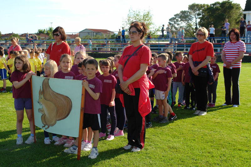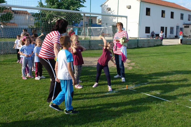 Nastupile su četiri ekipe: Vjeverice pod vodstvom tete Karmen Laskač, Slavuji pod vodstvom tete Jadranke Crnčević, Žapci pod vodstvom tete Davorke Šutalo i Garebovi koje je vodila teta Jelena Vekić. Natjecanje je održano u četiri discipline: mali nogomet (dječaci), trčanje 50 metara, bacanje loptice u dalj i skok u dalj.