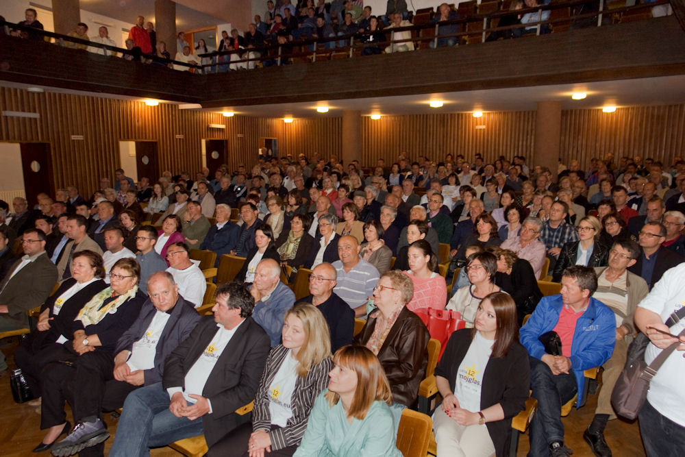 21.5.2014. - Svoj predizborni skup za predstojeće Europrlamentarne izbore sinoć je u GKS-u održao Nacionalni forum Nikice Gabrića sa svojim koalicijskim partnerima HSLS-om, PGS-om i Listom za Rijeku. Zanimanje građana bilo je veliko pa ih se u kazališnoj dvorani okupilo oko četiri stotine.