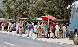 Najveća koncentracija štandova je između Opuzena i Komina, a na njima se može naći gotovo svega. Od proizvoda karakterističnih za naše podneblje, osim mandarina, zamijetili smo rogač, šipak, kivi, travaricu, prošek i maslinovo ulje.