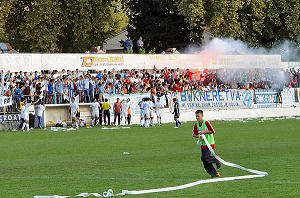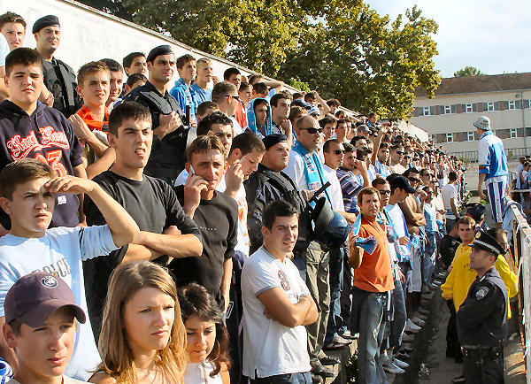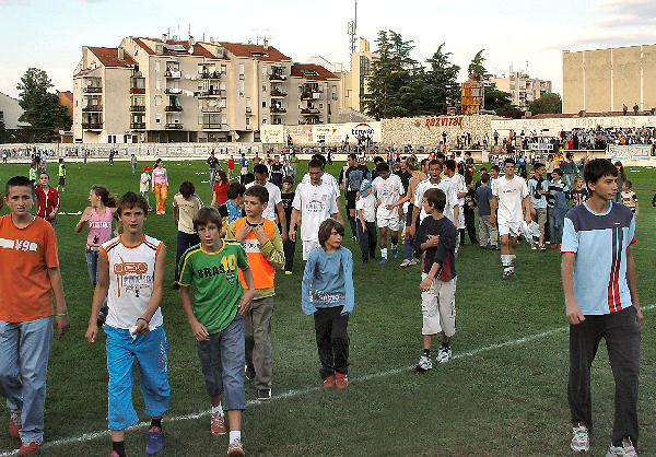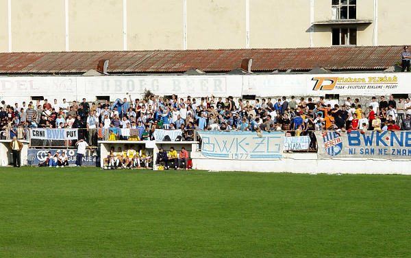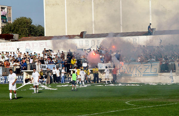 ... a Blue hellsi na zapadnoj, i jedni i drugi opskrbljeni navijačkim rekvizitima, transparentima i silnom željom da isprovociraju suprotnu stranu. No, sve je prošlo u najboljem redu jer je policija ocijenila da se radi o utakmici visoka rizika...