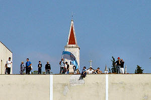Penjanju vještiji derbi su promatrali sa desetak metara visokog krova skladišta.