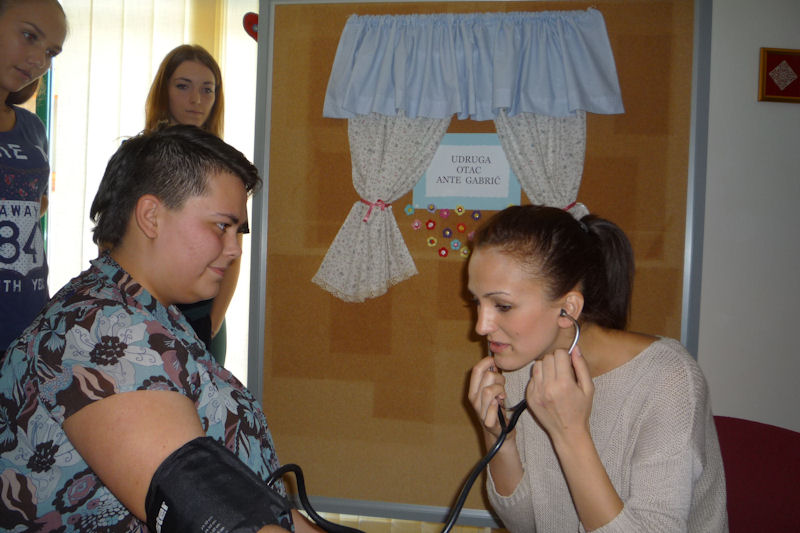 Iznenađenje su im priredili učenici Srednje škole Metković sa svojom profesoricom Karatrinom Barišić. Pjesmom i kolačima čestitali su starijima njihov dan i pridružili im se u aktivnostima. Zajednički su zaigrali tombolu, napeto iščekujući tko će dobiti cinkvinu a tko tombolu. Zanimljivo je da je većini mladih to bilo prvi put. Nagrade su, naravno, bili predmeti izrađeni na radionicama Udruge. Na kraju je medicinska sestra volonterka Josipa Kolovrat svima kontrolirala krvni tlak. Veselo i poletno ozračje vratilo je starije u njihove mlade dane koji, kako kažu, i nisu bili tako davno.