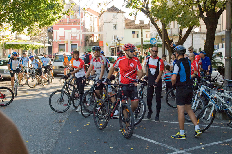 Metković, 20.10.2014. - U subotu se na metkovski Trg kralja Tomislava u popodnevnim satima dovezlo četrdesetak biciklista, od kojih je dio dan ranije krenuo iz Travnika na biciklijadi duhovno-sportskog karaktera nazvanoj Duhovno-pustolovna poveznica Travnik-Klobuk-Metković.
