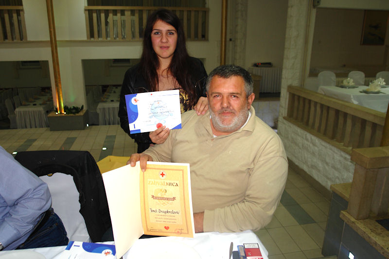 Metković, 29.11.2014. - Gradsko društvo Crvenog križa Metković sinoć je uz večeru i druženje u restoranu Adria svojim članovima za višestruko darovanu krv uručilo zahvalnice i priznanja. Time je svečano obilježen Dan darivatelja krvi, a podjela zahvalnica Hrvatskoga crvenoga križa započela je dodjelom darivateljima koji su 100, a neki i više od toga broja, darovali krv.