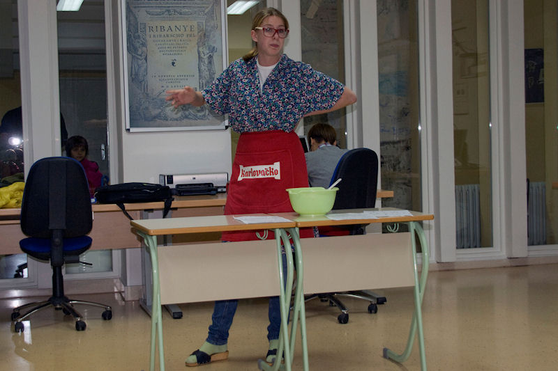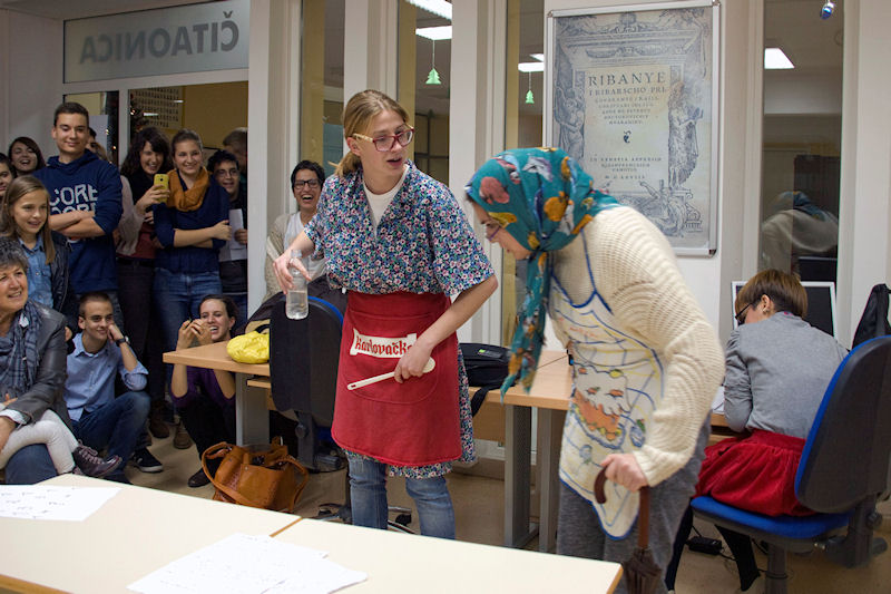 Večer je počela matematičkim igrokazom koji su osmislile gimnazijalke Martina Manenica, Iva Jerkić i Ivana Vrnoga te ga izvele sa svojim kolegama. Izvrstan je to bio uvod, pun smijeha, čime je kod mnogih mališana što su se našli u društvu puno starijih razbijena trema i „strah“ od nepoznata prostora. Nakon igrokaza većina se razišla po učionicama gdje su bile priređene radionice koje na popularan i zabavan način djeci približavaju matematiku i razvijaju zanimanje za nju, dok je u knjižnici bilo organizirano ekipno natjecanje iz matematike.
