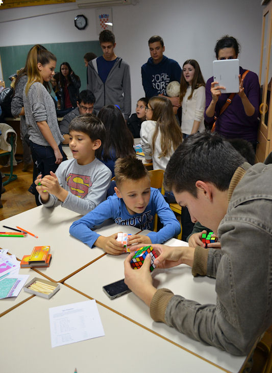 7.12.2014. - Kada će biti opet? – pitala su u petak navečer mnoga djeca, nevoljko napuštajući zgradu Gimnazije nakon što je Večer matematike dobrano nadmašila zamišljeni vremenski okvir. No, nije nadmašeno samo planirano vrijeme, daleko je nadmašena i organizatorova procjena broja zainteresiranih.