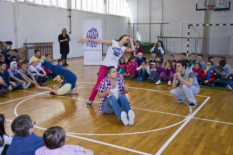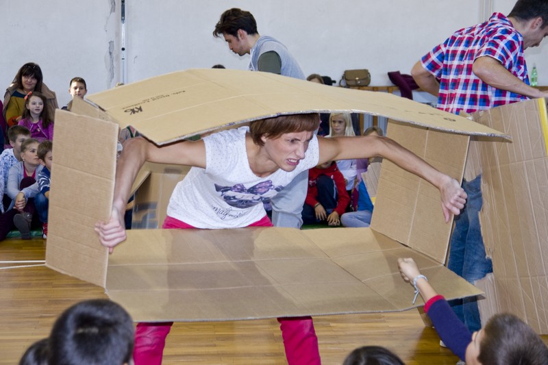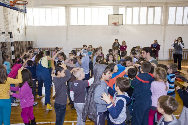 9.12.2014. - Jučer su glumci Kazlišta Trešnja za učenike prvih i drugih razreda te područnih škola OŠ Stjepana Radića izveli predstavu Tri skockana prašćića, nakon koje su s okupljenim učenicima održali i plesno-dramsku radionicu.