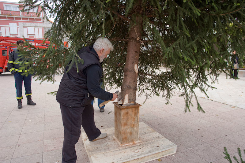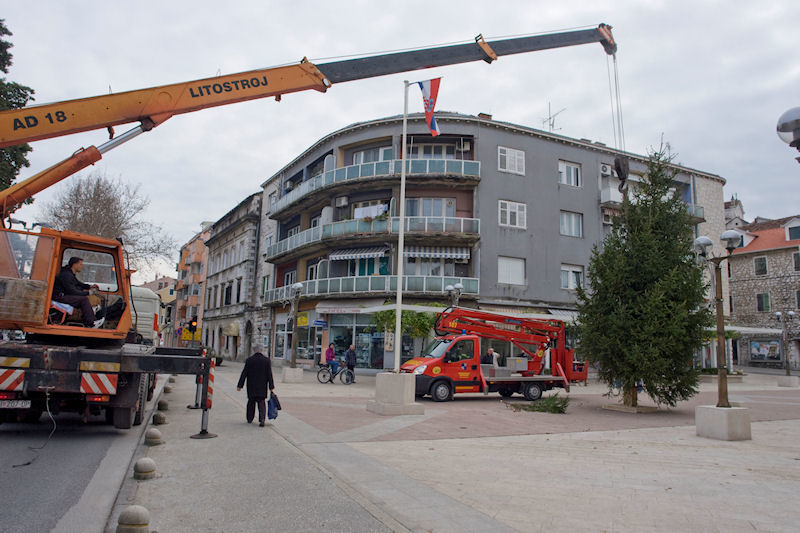 11.12.2014. - Danas je na Trg kralja Tomislava postavljena osammetarska božićna jela, čije će kićenje početi u 10.30 u subotu, 13. prosinca. U tome će sudjelovati više udruga te školska i vrtićka djeca, a pozivaju se roditelji čija djeca nisu organizirano uključena u kićenje da ih dovedu na Trg.