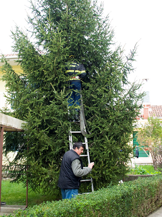 Jelu je prije petnaestak godina pred Božić kupila obitelj Davora Dominikovića i nakon toga ju je posadila u svoj vrt. Ove su godine odlučili jelu darovati svojim sugrađanima za Božić pa je Grad Metković angažirao JVP Metković te veliku dizalicu i kamion kako bi jela bila ispiljena i prenesena na Trg. Uime svih naših sugrađana obitelji Dominiković zahvaljujemo na daru.