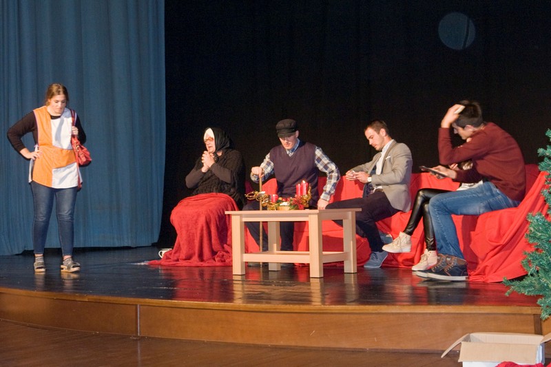 Metković, 18.12.2014. - Badnja je večer, no u obitelji u kojoj žive tri naraštaja nema onoga poznatog predbožićnog ozračja. Mladi bulje u svoje pametne telefone, otac očekuje e-mail s viješću da je njegov novi „biznis“ uspio, majka je još na poslu (radi dvije smjene), a djecu je zamolila da malo počiste i okite jelu, što oni, naravno zaborave.