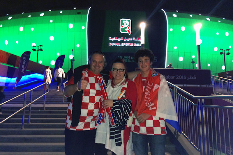 17.1.2015. - Iz Dohe nam se sinoć javio Ivo Nuić koji je sa suprugom Fani i sinom Dragom došao podržati naše rukometaše na debiju Svjetskoga prvenstva u rukometu. Iako nisu sjedili na dijelu tribina iza gola, gdje je bilo najbučnije, kamera ih je uhvatila sa hrvatskom zastavom na kojoj je pisalo Metković. Ne sumnjamo da je toplo oko srca bilo izborniku Goluži te Brozoviću i Čupiću koji je Austrijance uništio s dvanaest pogodaka. Da nije bilo tako…