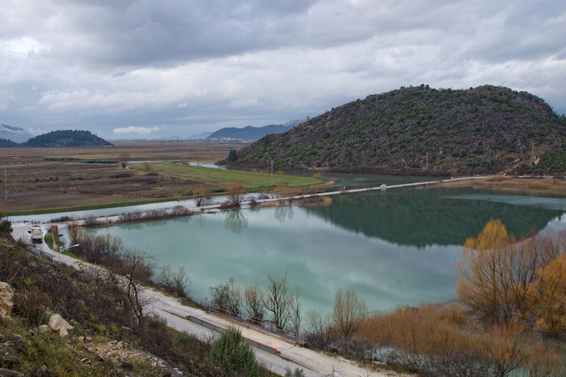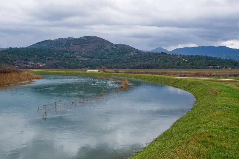 Metković, 22.1.2015. - Iznimno visok vodostaj u lateralnom kanalu što od ruba Metkovića vodi u Kuti, velike oborinske vode s okolnih brda te brojni izvori koji su proradili zbog velikih oborina poplavili su polje Pologušu i dio ceste koja vodi ka Glušcima te to selo odsjekli od svijeta.