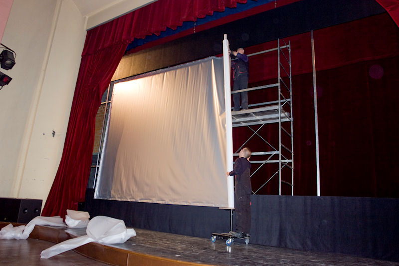 25.2.2015. - U kazališnoj dvorani GKS-a danas je na konstrukciju postavljeno 3D platno pa se pristupilo ugađanju projektora i audiosustava. Slijedi obuka osoblja za rukovanje sustavom. Budu li riješeni svi tehnički detalji vezani uz prilagodbu dvorane za kinopredstave otvaranje kina se očekuje za desetak dana.