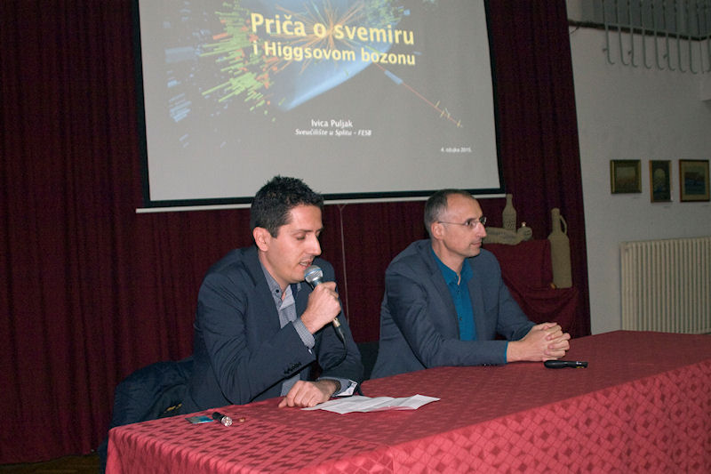 5.3.2015. - Na poziv svoga bivšega studenta Mislava Gluščevića, sinoć je u Galeriji GKS-a dr. sc. Ivica Puljak, redoviti profesor fizike na splitskome FESB-u i dugogodišnji koordinator tima znanstvenika na ženevskom CERN-u, održao zanimljivo predavanje o svemiru koje se sastojalo iz dvaju dijelova.