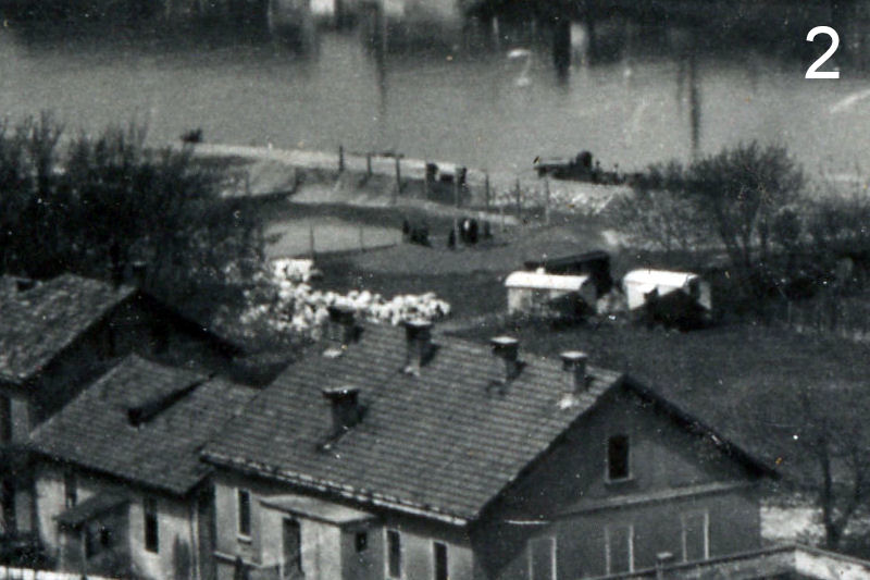 Riječ je o četirima fotografijama, od kojih su neke tiskane i kao razglednice, a koje su nastale 1938., najvjerojatnije u travnju jer se vidi napredak radova na crkvi sv. Nikole (posvećena 17. XI. 1938.), čiji je kamen-temeljac postavljen 13. ožujka, dok, s druge strane, stabla još nisu potpuno zazelenjela. Autor je najvjerojatnije pok. Libero Mišur, u čijemu smo fotoalbumu pronašli dvije od četiriju fotografija kojima smo načinili panoramu. Moguće je da druge dvije nedostaju jer je autor njihove negative bio dao za tiskanje razglednica. Panorama se nije mogla idealno poklopiti jer su neke fotografije načinjene sa zapadnoga, a neke sa sjevernoga otvora zvonika.