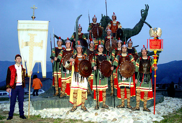 6.2.2006. - Nakon šesnaest stoljeća rimski vojnici ponovno su osvanuli na naronitanskim zidinama. Riječ je o žudijama ili žudijima, kako sebe nazivaju, iz Vodica čija odora i oprema prilično vjerno oponaša onu rimskih legionara.