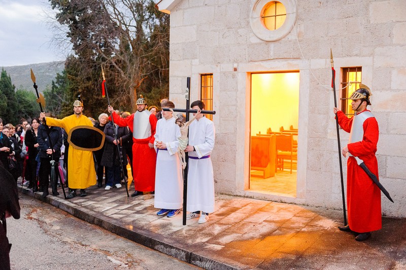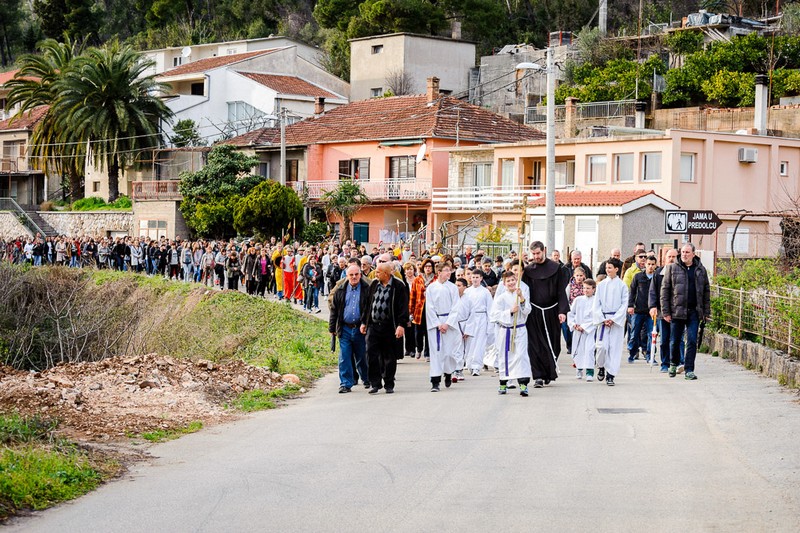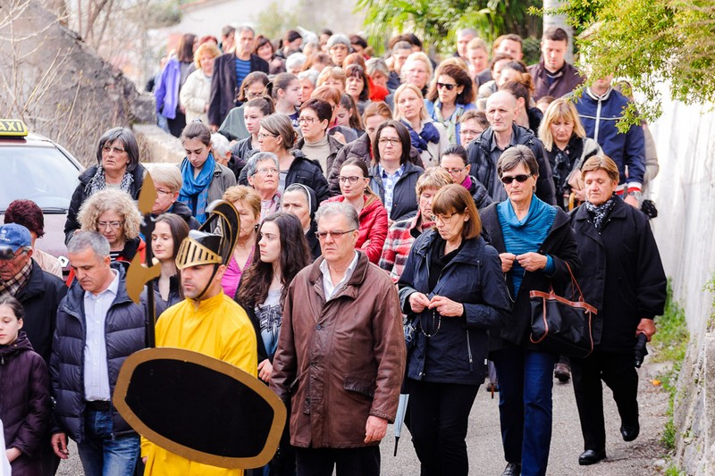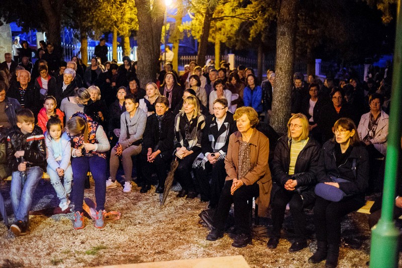 U pobožnosti križnoga puta, što ga je uz asistenciju župnih vikara fra Lukice Vojkovića i fra Kristijana Perkovića te mladih predvodio župnik fra Petar, sudjelovale su žudije, ministranti, članovi župnih zborova te mnoštvo vjernika iz svih dijelova župe sv. Ilije. Od župne crkve starim dijelom grada molila su se i razmatrala žalosna otajstva Gospine krunice. Dolaskom na periferiju u Podkraj započela je pobožnost križnoga puta na četrnaest postaja do Dubravice na kojima se razmišljalo, molilo, pjevalo, preispitivalo svoj odnos prema Bogočovjeku i njegovoj neizmjernoj ljubavi koju je pokazao prema svakome od nas te svoju ljubav prema nama na Golgoti potpisao svojom krvlju i mučeničkom smrću. Od postaje do postaje molitvom se vapilo za sve patnike, nepravedno osuđene, stare i bolesne, nevino progonjene, osamljene, za osobe posvećena života, za nerođenu djecu….