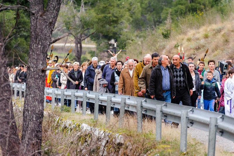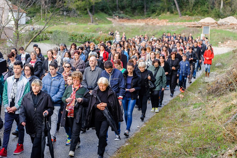 30.3.2015. - Prošloga je petka od crkve sv. Ilije do Svetišta sv. Ante na Dubravici krenuo križni put u kojemu su sudjelovali župljani Župe sv. Ilije u Metkoviću. Prije polaska procesije križnoga puta župnik fra Petar Gulić u župnoj je crkvi izmolio blagoslovnu molitvu nad svim sudionicima te pobožnosti.
