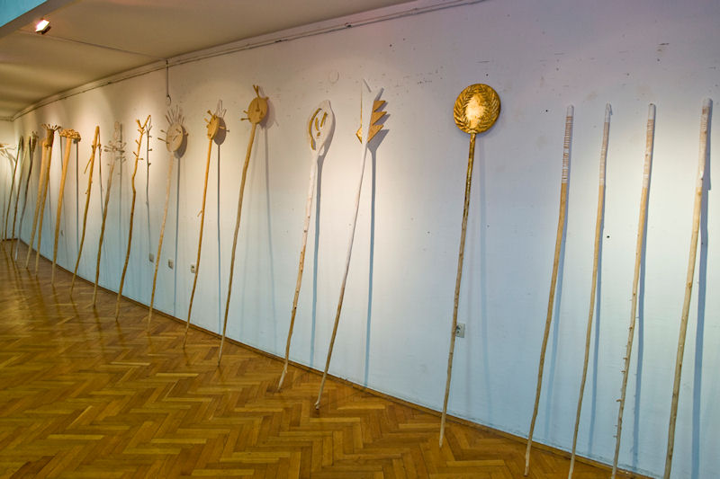 – Štap je kroz povijest i prapovijest, u religijama i mitovima nepobitno bio sredstvo mudraca i znak njihove nadmoći, kao Pitagorin štap, Mojsijev, Aronov štap ili štap Nebeskog Duha Madoc Indijanaca, s kojim i iz kojega je Nebeski Duh stvorio život. Jednako tako ti će štapovi biti sredstvo zapovjedništva, ali i sredstvo i oznaka muške vladavine, možebit zbog njegova izjednačavanja s falusom. Tek na rubu zakonitosti i crne i bijele magije bilježe se i ženske uzurpacije štapa, kao od strane božice Ištar, ili čarobnice Kirke, ili svekolikih vještica koje na štapu od metle lebde zloćudnim prostorima ljudskog bezumlja, ili pak od strane vila u žrnovskim Kočjama: jedna od njih, ona mudrija i pametnija, štapićem od oskoruše udarila je po stijeni i u njoj se otvorio izvor na kojem se napojiše žedni Jazon, pjevač Orfej i prekrasni junak Heraklo. Ipak, sve ženske uzurpacije ne mogu potrti mušku srčiku štapa, čak i kad služi kao treća ruka (ili treća noga), kad se njime pokazuje, prijeti, zapovijeda, udara, moli, razdvaja, stvara, preobražava, liječi, blagoslivlja, proklinje-štap ostaje veliki ON, sredstvo autoriteta i vladavine. Takva društvena uloga štapa danas je u velikoj mjeri poništena nastupom suvremenih tehnologija i gospodstva novca, koji su promovirali nove simbole i sredstva moći, potiskujući štap u vjerovanja, mitove, legende i folklor – rekla je na otvaranju izložbe Duhović Žaknić.