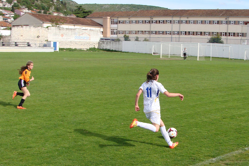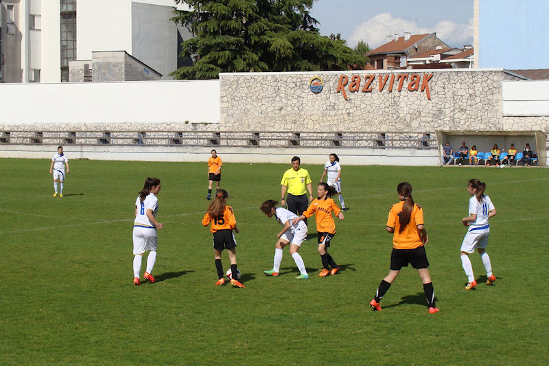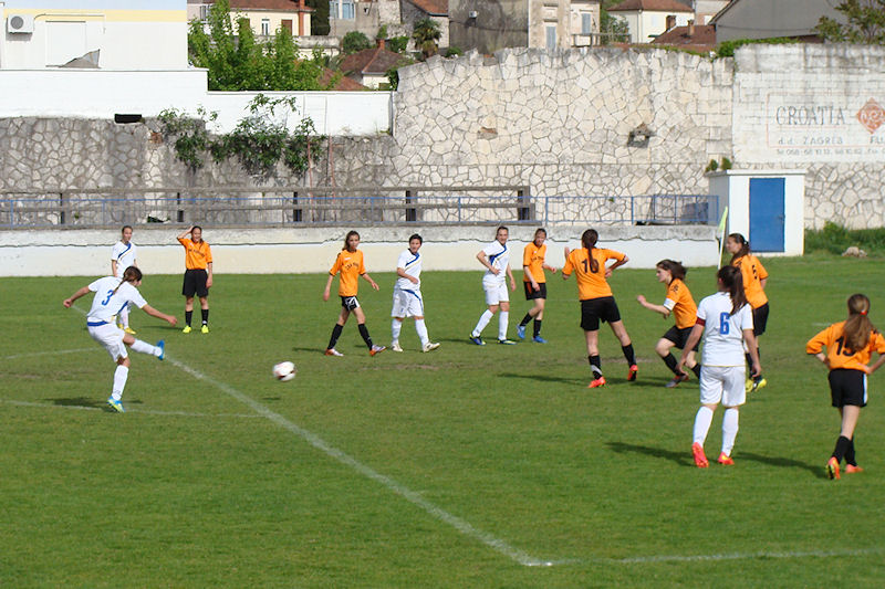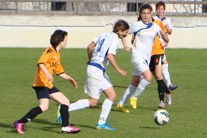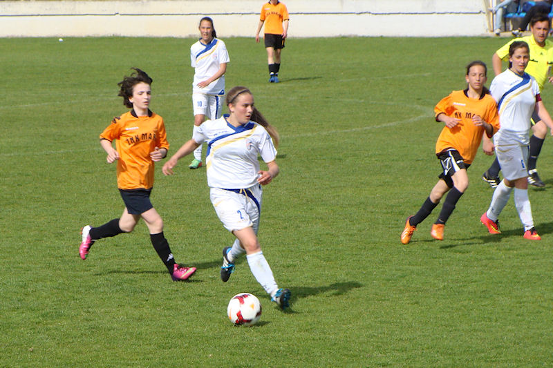 Metković, 2.5.2015. - U Metkoviću je na Igralištu Iza Vage jučer odigrana utakmica 10. kola I. HNL jug - žene između kadetkinja ŽNK Neretva iz Metkovića i ŽNK Marjan iz Splita, koja je odlučivala o naslovu prvaka. Pred šezdesetak gledatelja domaćin je zasluženo pobijedio rezultatom 3:1.