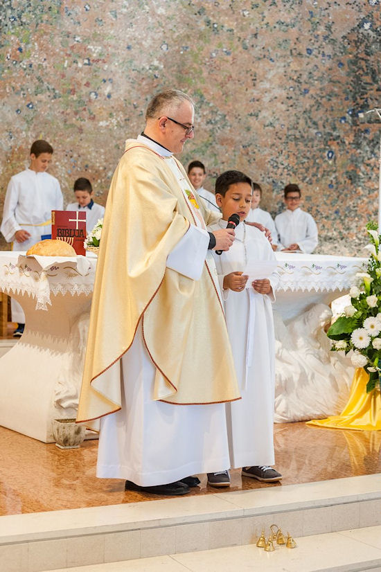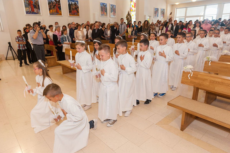 4.5.2015. - Jučer je u Župi sv. Nikole Biskupa šezdeset prvopričesnica i prvopričesnika pristupilo prvoj svetoj pričesti, sakramentu koji im je tijekom svečane euharistije u župnoj crkvi sv. Nikole podijelio župnik don Senko Antunović.