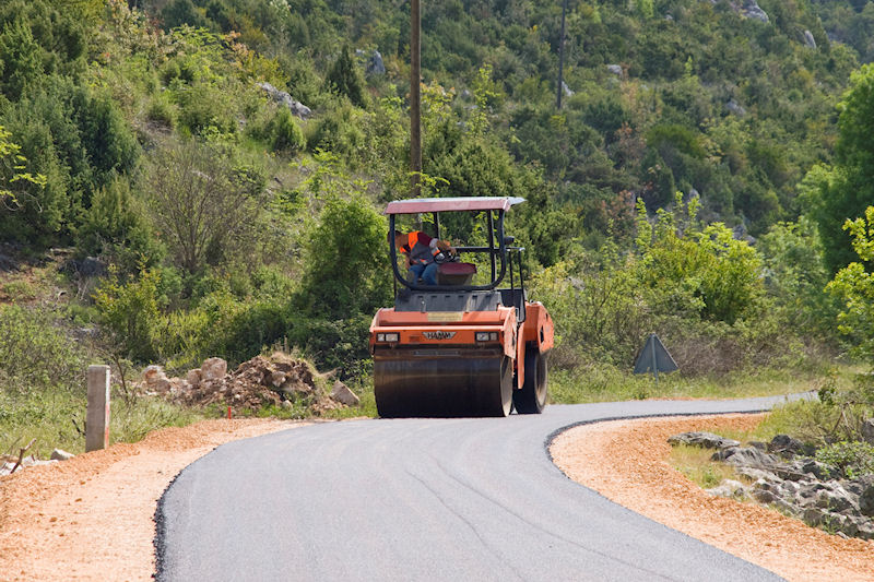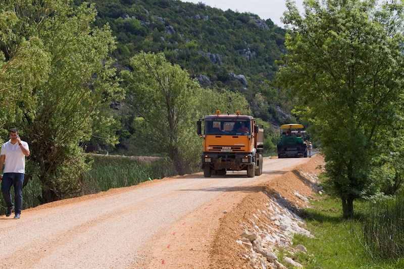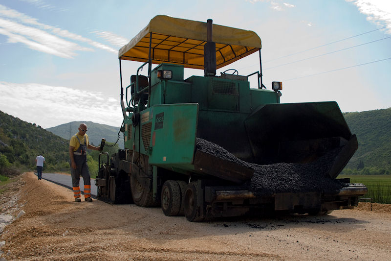 Metković, 5.5.2015. - Djelatnici Dubrovnik cesta jučer su lijepo vrijeme iskoristili za asfaltiranje dviju dionica na lokalnoj cesti od Pologoše prema Glušcima (Ž6220), prve u dužini od oko 310 metara i druge duge oko 120 metara.