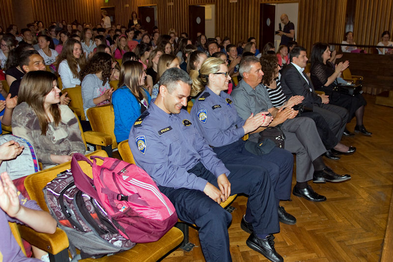 Kazališnu predstavu pratilo je oko 250 učenika sedmih i osmih razreda, brojni prosvjetni djelatnici, predstavnici lokalne uprave, policije i drugih institucija. Pred samu predstavu na pozornici je nastupilo četvero učenika Osnovne glazbene škole Metković koji su izveli nekoliko glazbenih točaka.