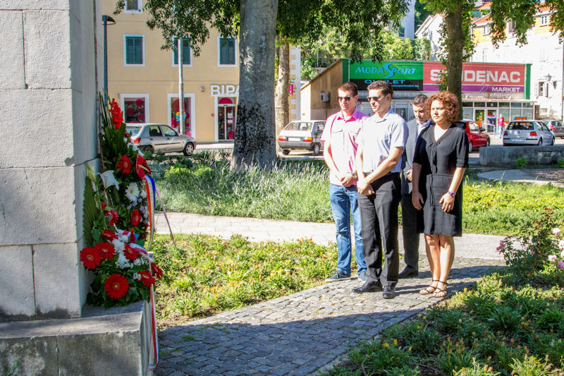 22.6.2015. - U povodu Dana antifašističke borbe u danas su pred Spomenikom žrtvama fašističkoga terora vijenac i zapaljene svijeće položili gradonačelnik Božo Petrov sa svojim suradnicima Nikolom Grmojom i Mirkom Volarevićem te gradskom vijećnicom Marijanom Galov.
