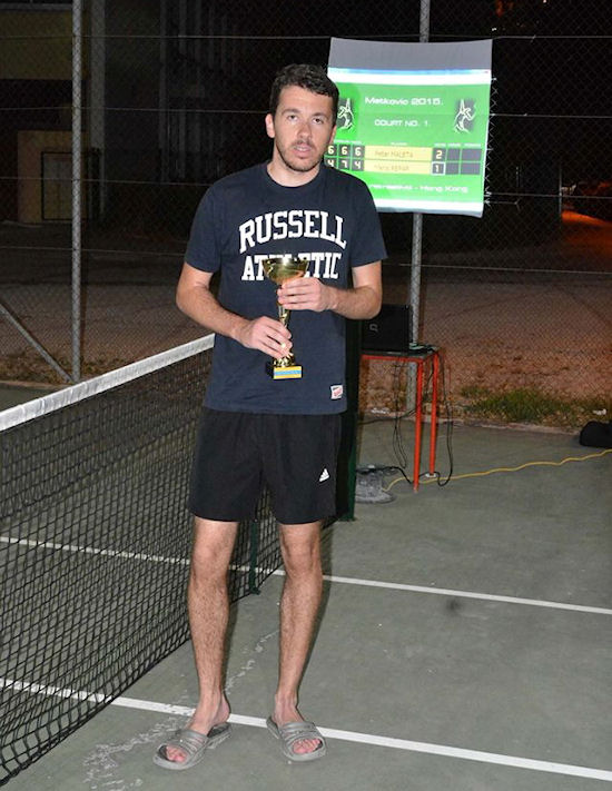 Metković, 22.7.2015. - U organizaciji metkovskih rekreativaca okupljenih pod imenom Hong Kong odigran je završni susret Teniskoga turnira Metković 2015. koji je sudjelovanjem igrača iz Švicarske, Njemačke, Norveške, BiH i Hrvatske imao i međunarodni karakter, a kvalitetom je bio na najvišoj razini u posljednjih dvadesetak godina. U finalu snage su odmjerili prošlogodišnji pobjednik Petar Maleta iz Metkovića i Mario Repar iz Čapljine.