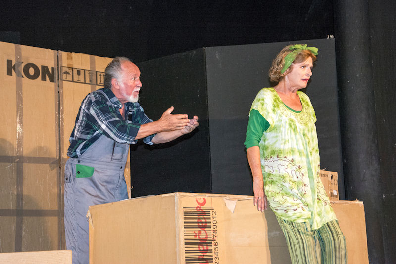 U glavnim ulogama nastupili su Biserka Ipša, Pero Juričić, Tara Rosandić, Ivica Pucar te doajen hrvatskoga glumišta i zaštitni znak Histriona Žarko Potočnjak, koji u predstavi tumači nekoliko likova. Odličnim izvedbama glumci su nasmijali metkovsku publiku, koja ih je kraju nagradila dugim pljeskom.
